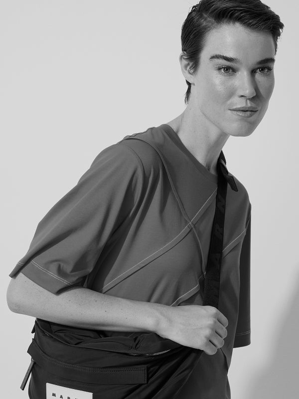 The standout piece in the collection is undoubtedly the Spliced Mesh Trench. This showstopper boasts sleek buckle trim details and voluminous pleats at the back, offering a soft drape in buttery, lightweight mesh. It’s the perfect layering piece to elevate an all-white outfit.