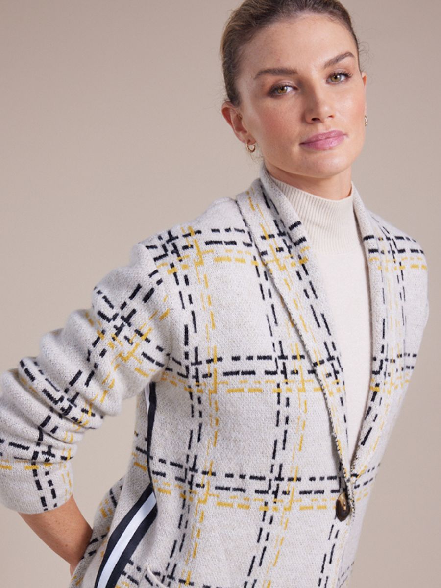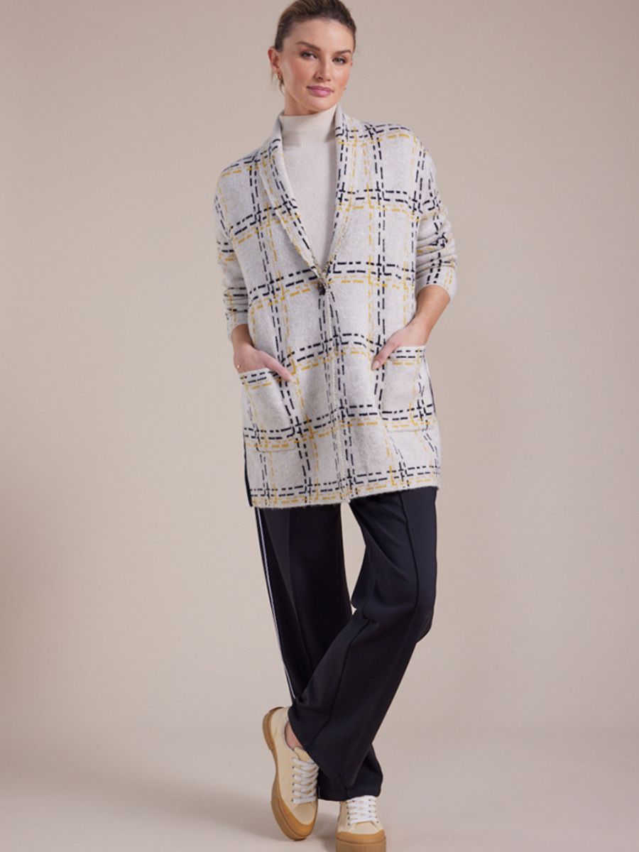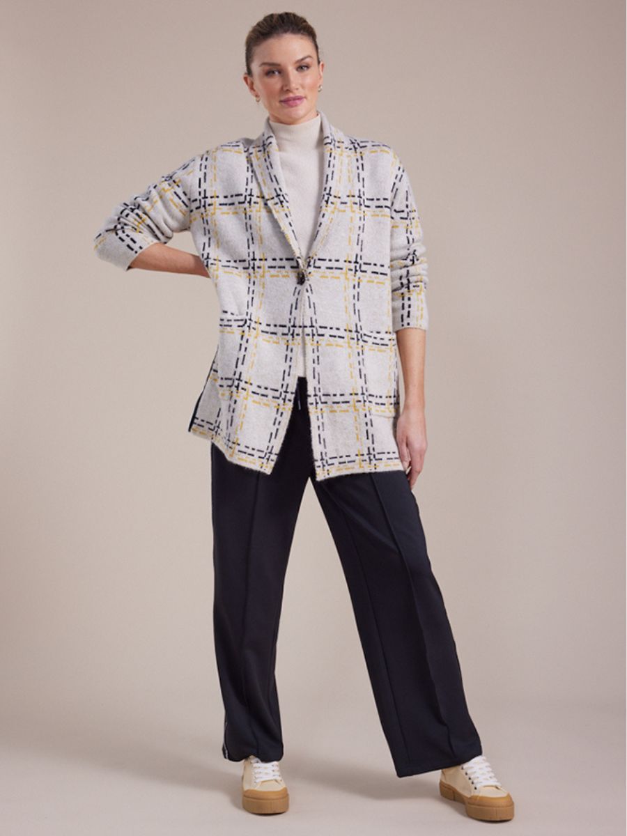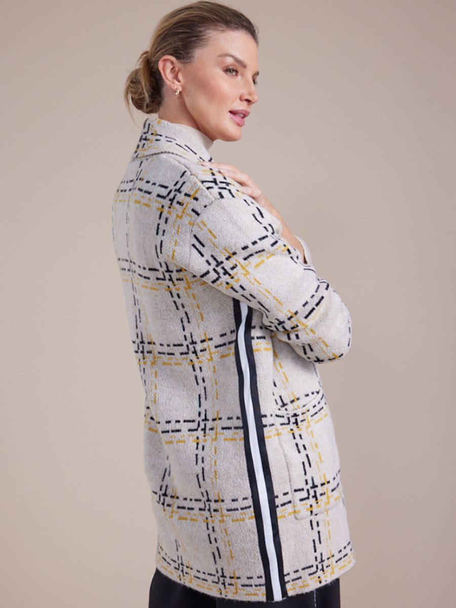 Stay warm and stylish this winter with the Brushed Check Coat! The large check pattern with contrasting stripe panel will be a standout and elevate your winter wardrobe. The pockets add a practical touch to the piece while the collar creates a classic feel. This coat can be easily layered on top of your favourite tops to create a beautiful look for any occasion, perfect for any fashion forward individual!