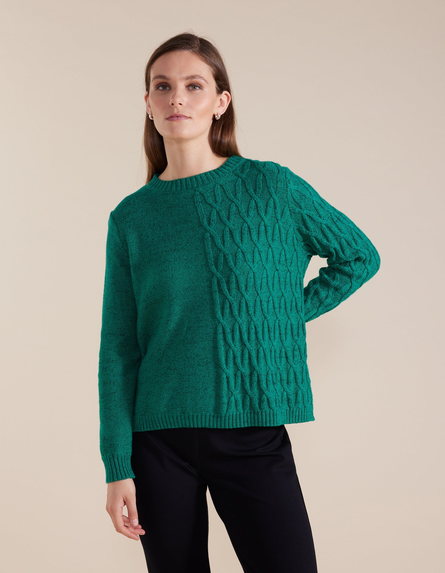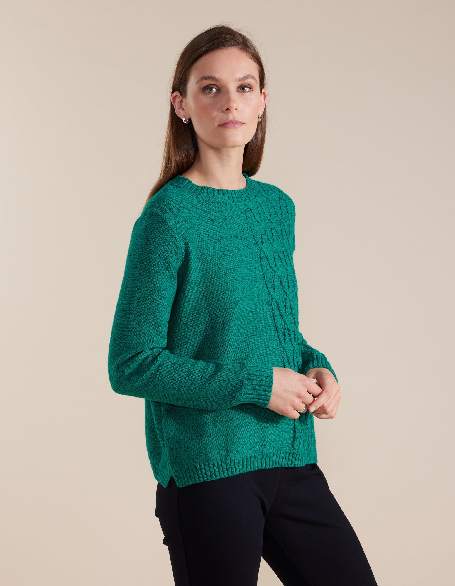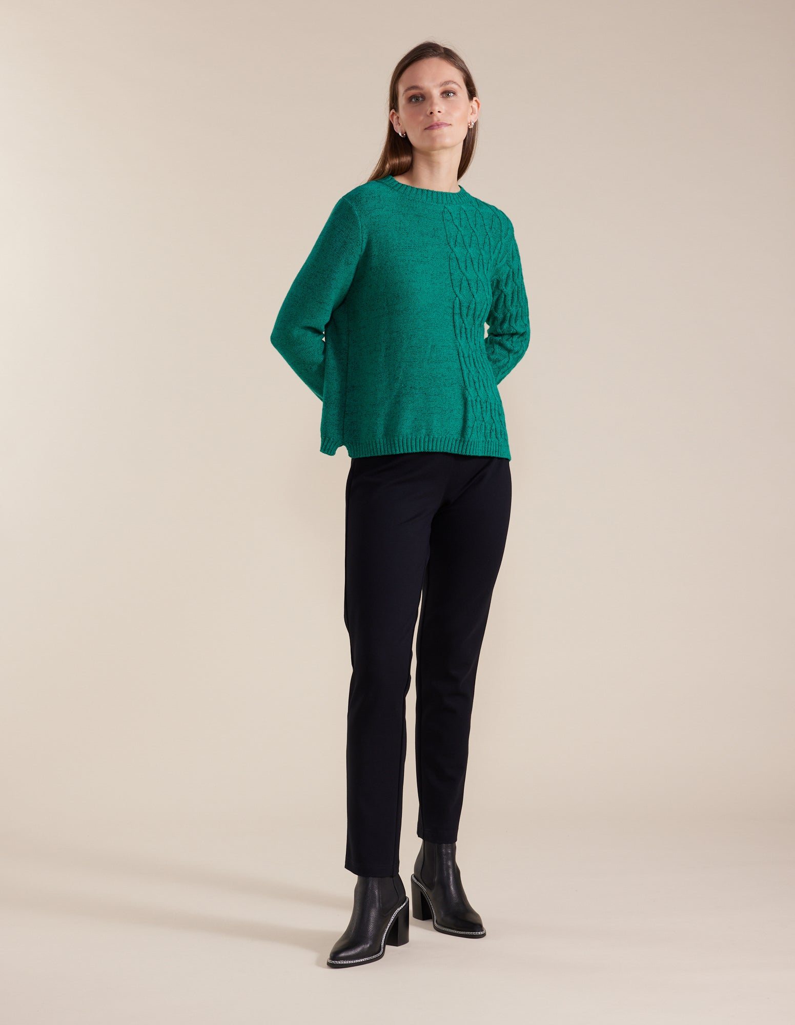Stay warm this winter in the fabulous Cable Knit Sweater! The ribbed neckline, cuffs and hemline provide a snug fit enhancing the cosy feel. The cable knit pattern of half the sweater brings a stylish touch to the winter essential. This sweater can be paired back with jeans or joggers for a more casual look or pants and a coat for a night out.